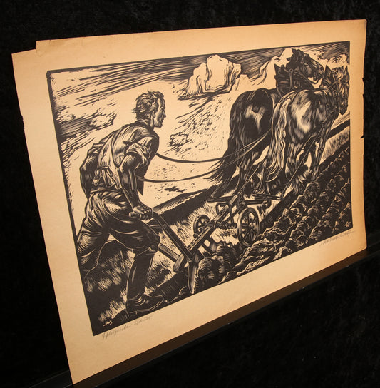 Warnecke, Rudolf - Pflügender Bauer - Holzschnitt - handsigniert
