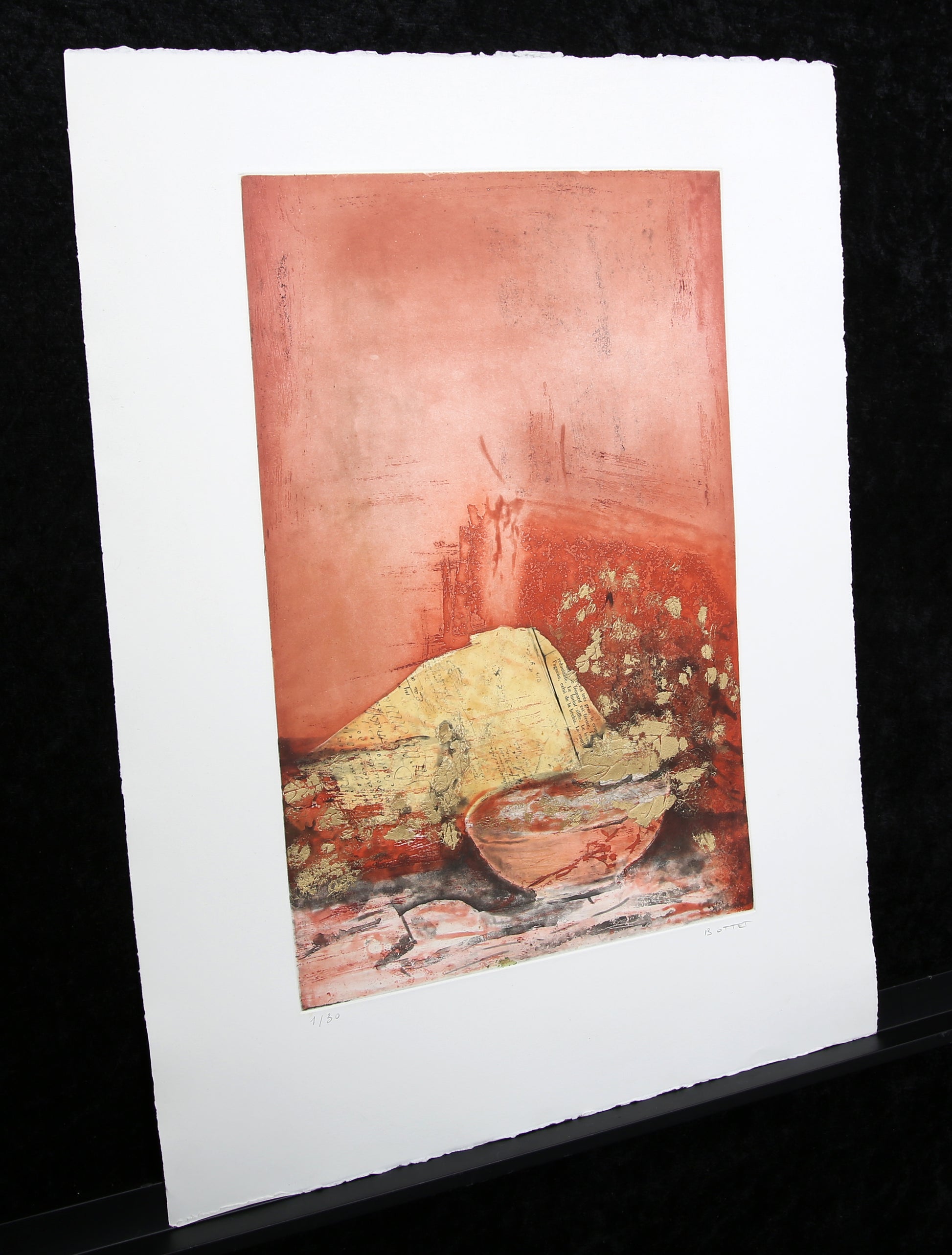 Bottet, Nicole - La Lettre - Color etching - reworked with gold - hand-signed
