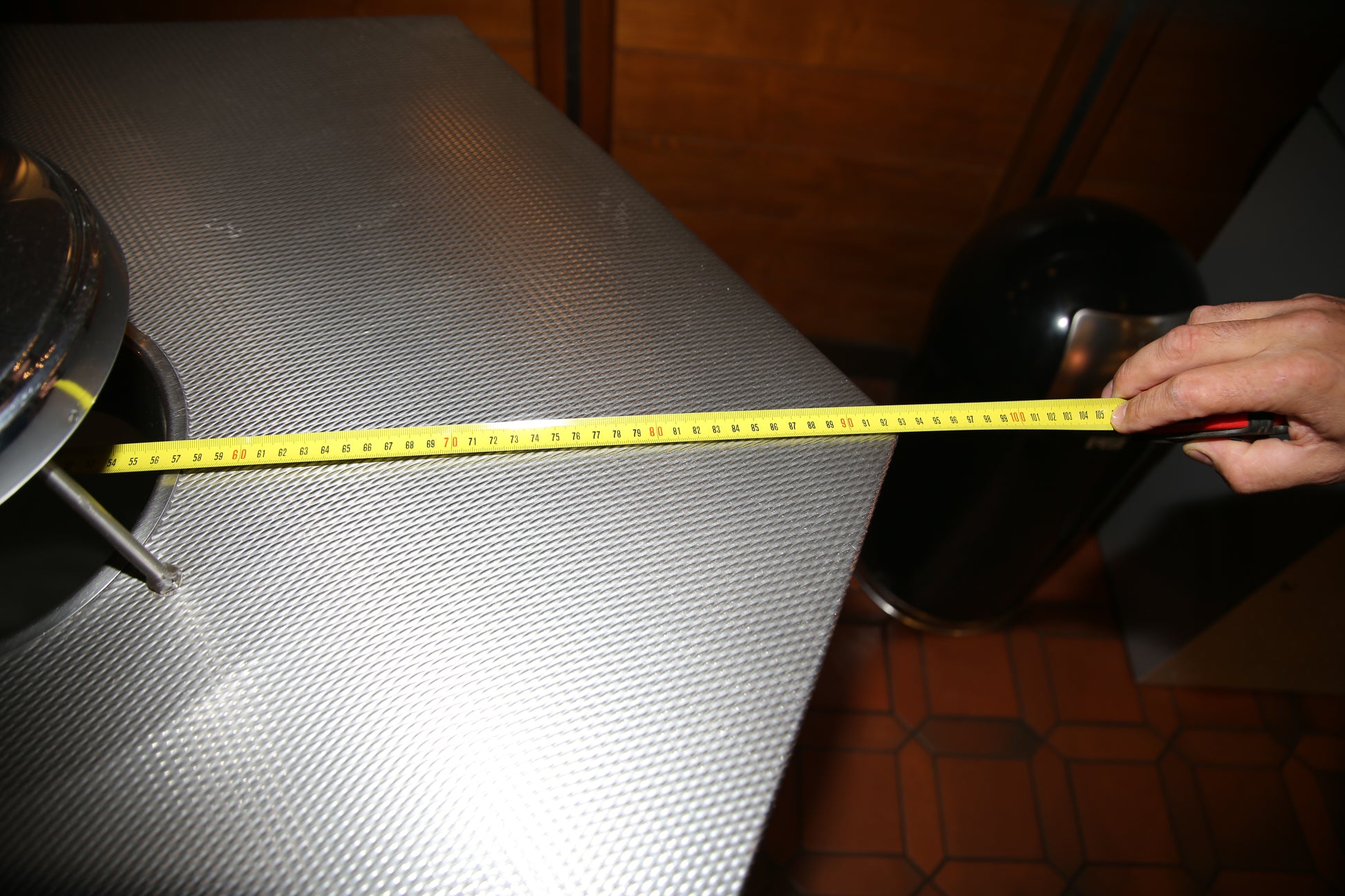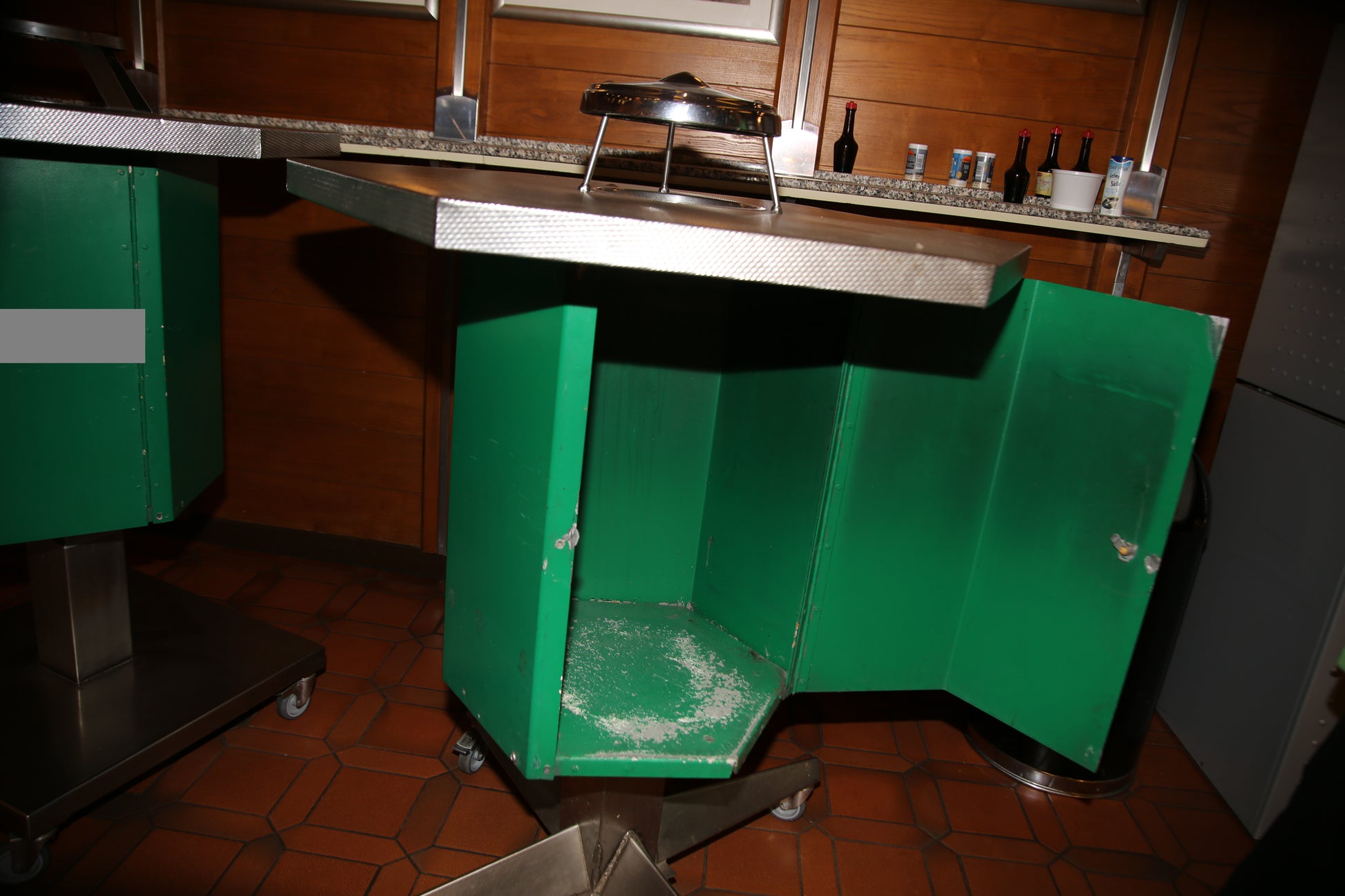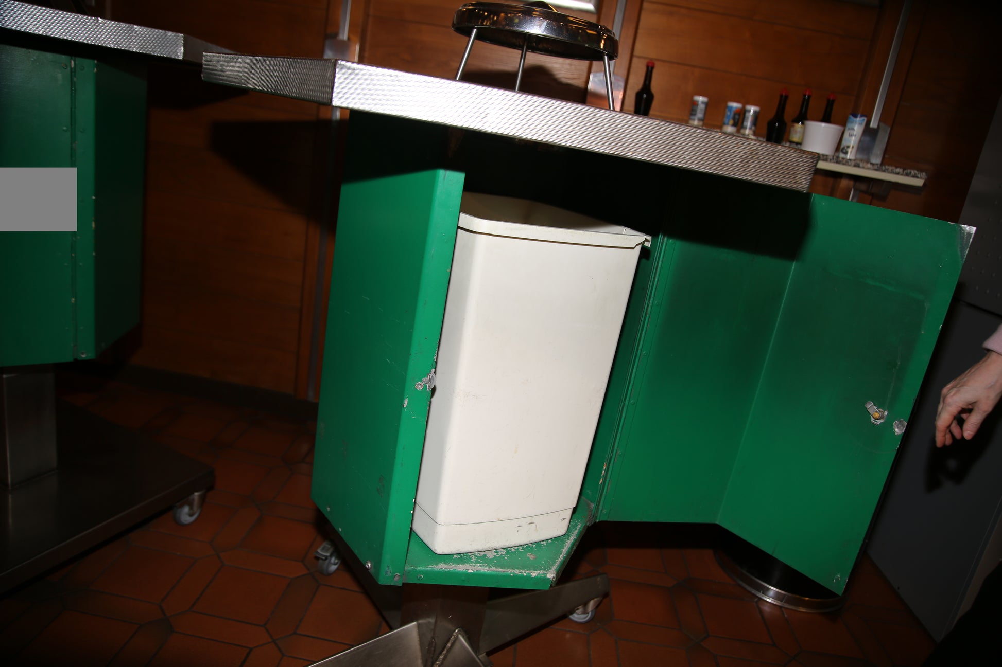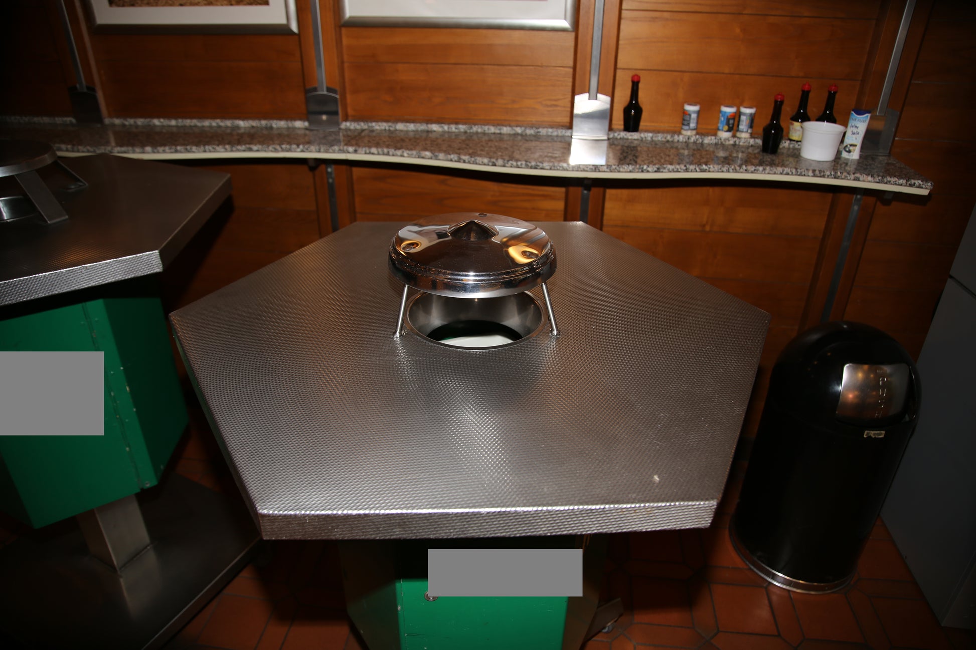 Sehr stabil, mit Abfallbehälter unter der Tischmitte