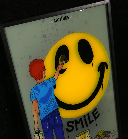 RFART - Smile - Lightbox - signé à la main - construction 3D dans un cadre en bois