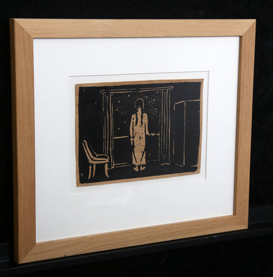 Teuber, Hermann - Femme à la fenêtre - Linogravure - encadrée - signée à la main