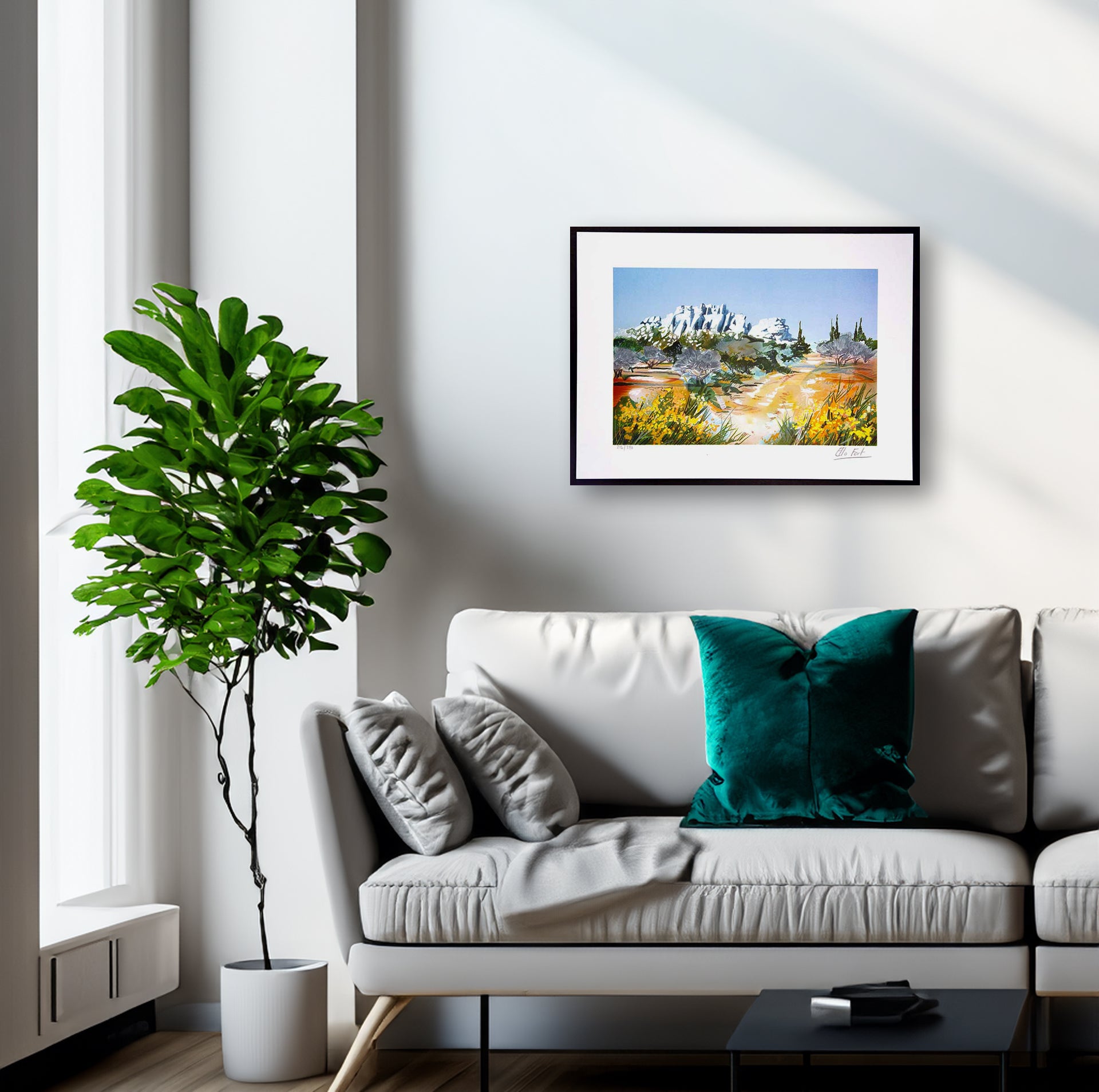 Fort, Ella - Paysage de montagne du Sud - Lithographie couleur - signée à la main