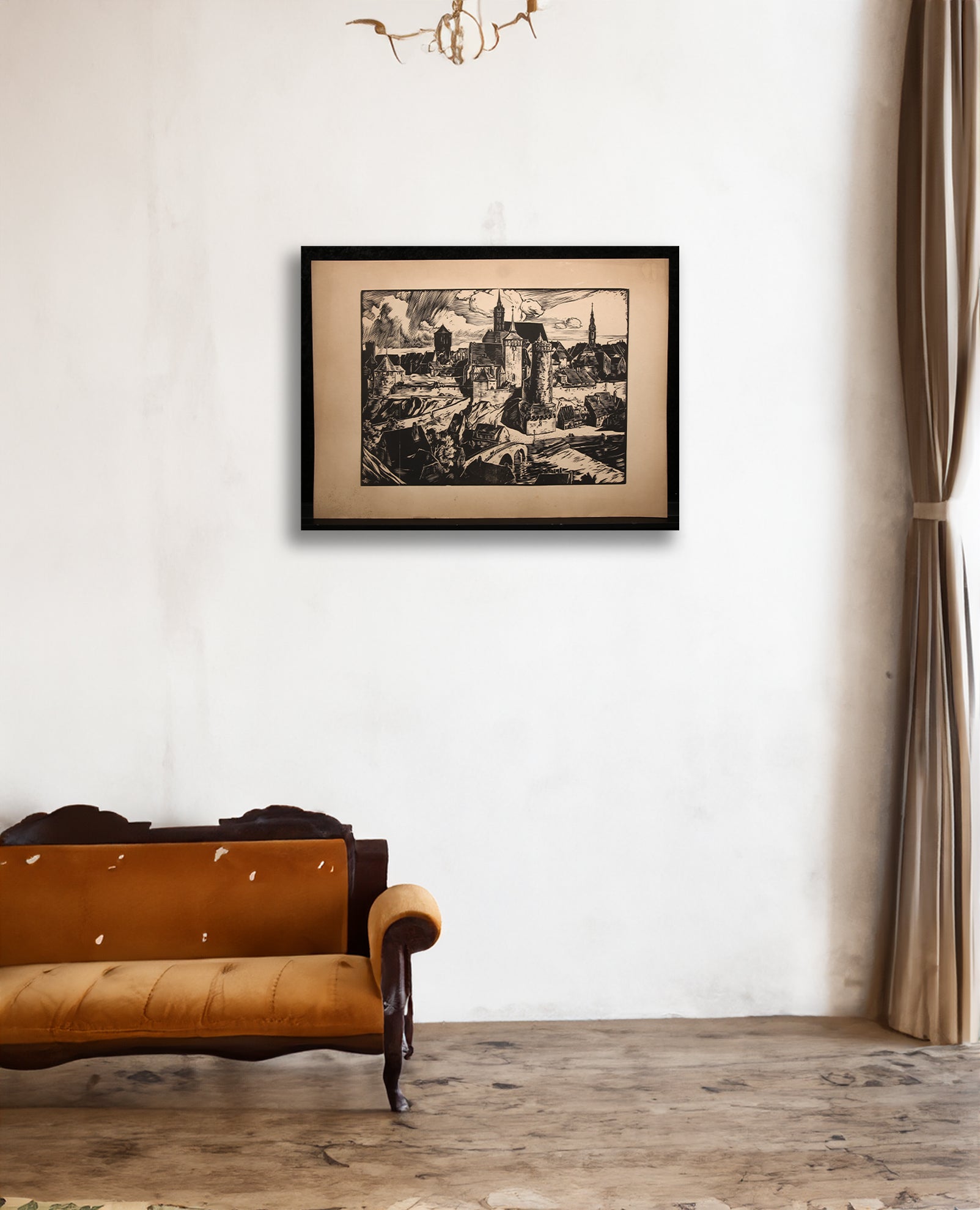 Warnecke, Rudolf - Bautzen du Sud - gravure sur bois - monogrammé