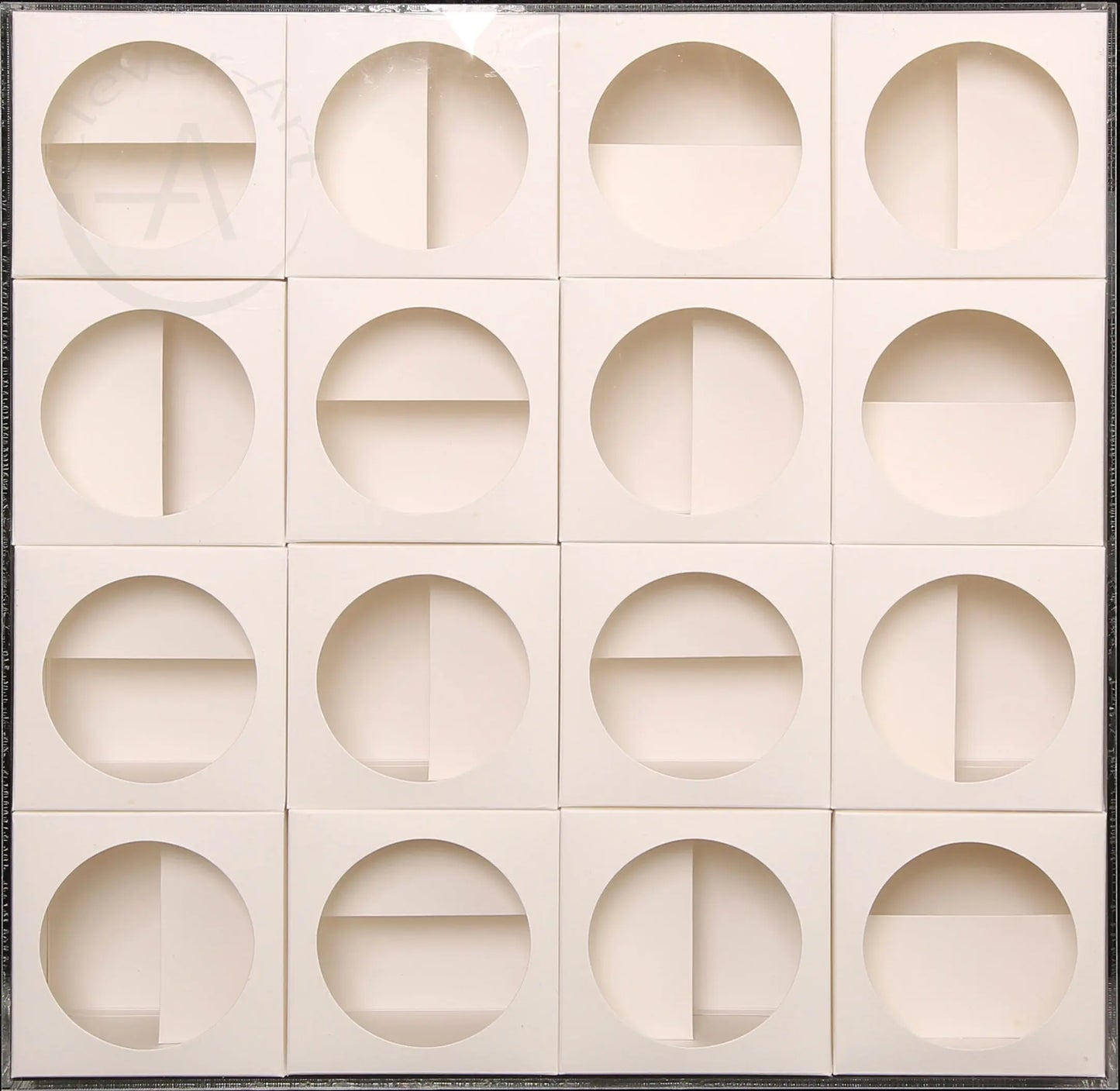Skulptur aus 16 weißen Kartonwürfeln in Plexiglas