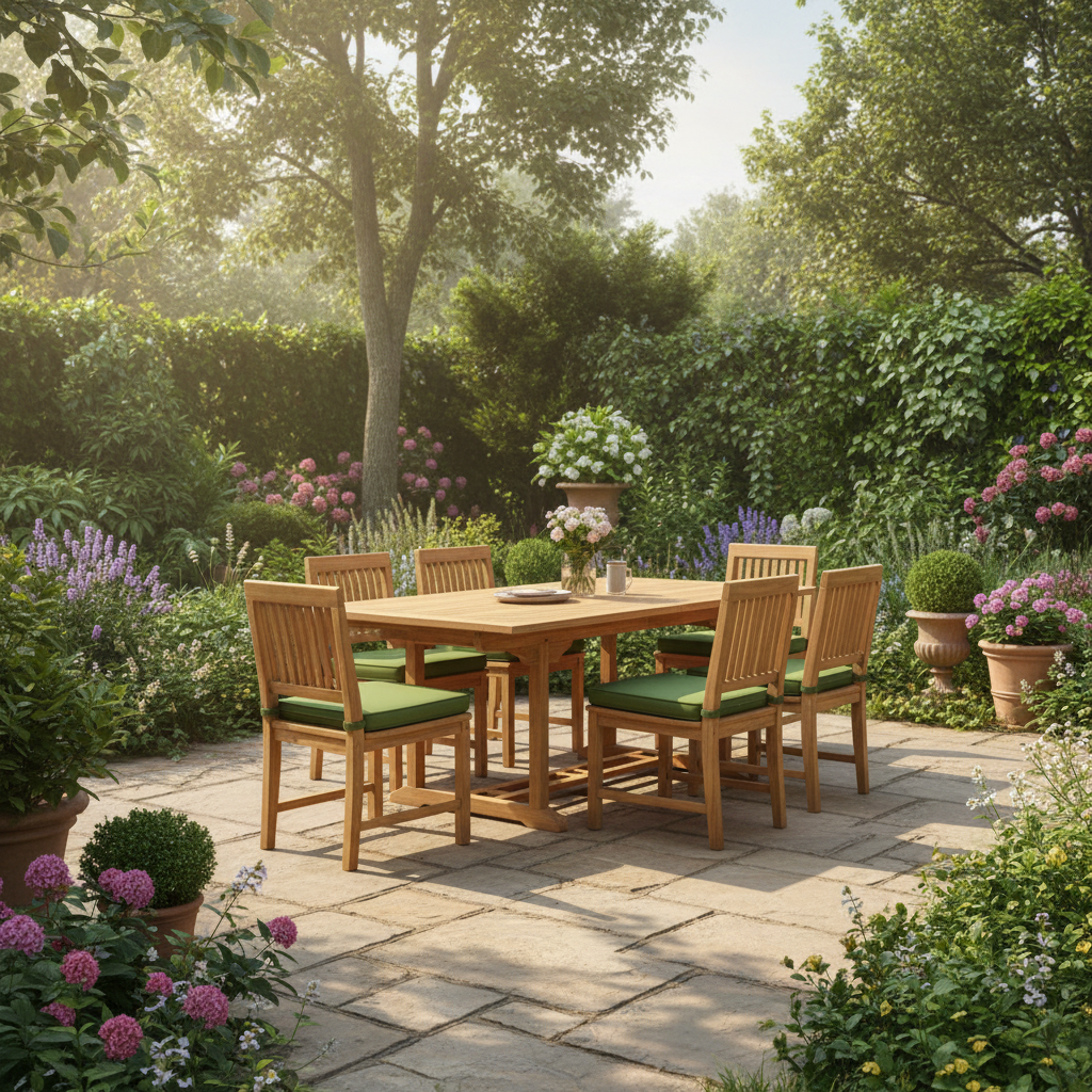 Langlebiges Teakholz, robust, ein Hingucker für jedes Esszimmer, Wintergarten, Küche oder Terrasse.