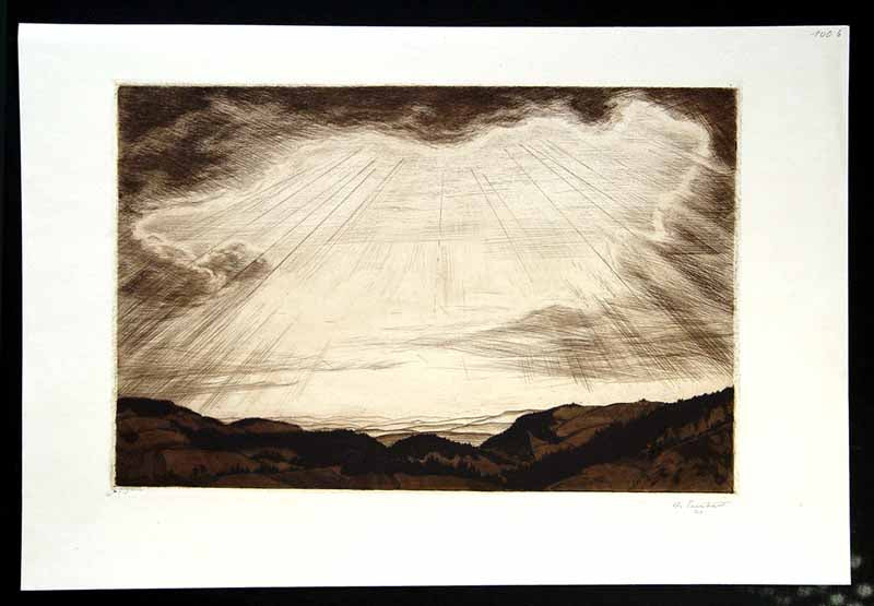 Teuber, Hermann - Landschaft - Radierung - handsigniert - gerahmt