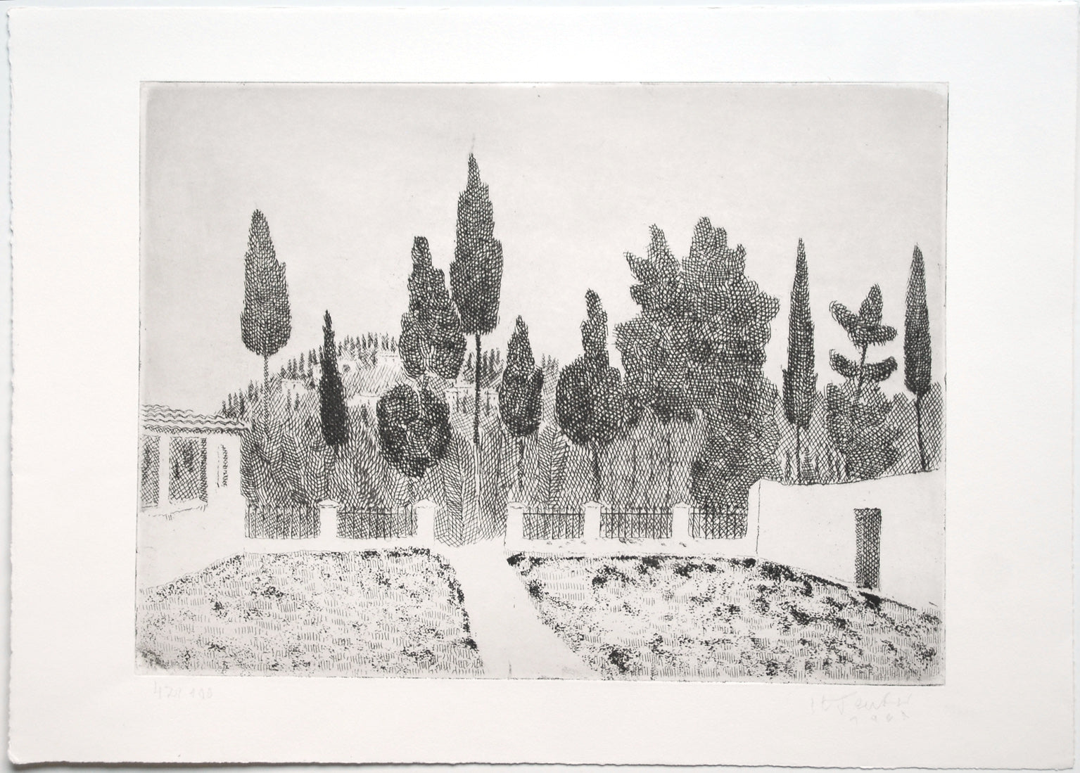 Teuber, Hermann - Mediteraner Garten - Radierung auf Bütten - handsigniert